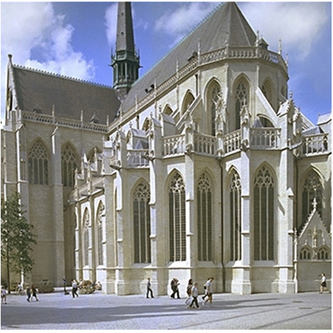 St. Pieterskerk, over for rådhuset, blev bygget i 15. århundrede, og skulle egentlig have haft tre slanke tårne, men da jorden truede med at skride under bygningen, foretrak man at stryge dem. Det ualmindelige harmoniske kirkerum er lyst og luftigt med et væld af elegante søjler og tilspidsede vinduer. Koret er lavet om til museum. Her ses blandt andet altertavlen “Den sidste Nadver” af Dirk Bouts, der blev født i Haarlem, men arbejdede fast i Leuven fra 1450. Han har malet sig selv til højre i billedet med en rød hat.