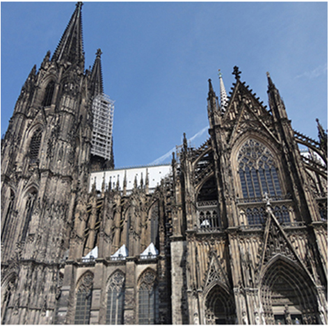 Ved siden af - men uden at skræmme domkirken - har man skabt et forunderligt byggeri, som blandt andet rummer en koncertsal, som hovedsagelig ligger under Rhinens overflade. Ovenpå er der skaffet gode udstillingsrum om det berømte Wallraf-Richartz/Museum Ludwig, Bischofsgartenstraze 1.
