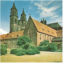 Magdeburg Katedral, den første gotiske katedral i den tysktalende del af verden, blev rejst efter en brand, der havde lagt byen øde i 1207. Katedralen i sin nuværende skikkelse blev skabt under Ærkebiskop Albrecht II’s regi på den ødelagte romanske forgængers plads. Den afspejler kraftigt Albrechts forkærlighed for fransk arkitektur og ny gotisk stil på den tid.
