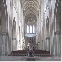 Domkirken er den ældste gotiske katedral i Tyskland, opført 13. og 16. århundrede som treskibet basilika og udsmykket med bronzegravplader (blandt andet af Skt. Mauritius, to ærkebisper og Jesu lignelse om de ti jomfruer).