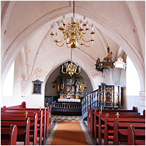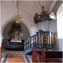 Rigt udskåren prædikestol ca. 1580 og altertavle, 1632. Ifølge overleveringen er Marsk Stig begravet i kirkee