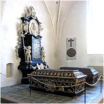 Kalkmalerier på triumfvæg fra ca. 1250. Adelsslægten Marsvind epitafium (nord-kapllets østvæg. Thomas Kingos kapel med kiste og epitafium 1703. Morten Korchs grav 1954.